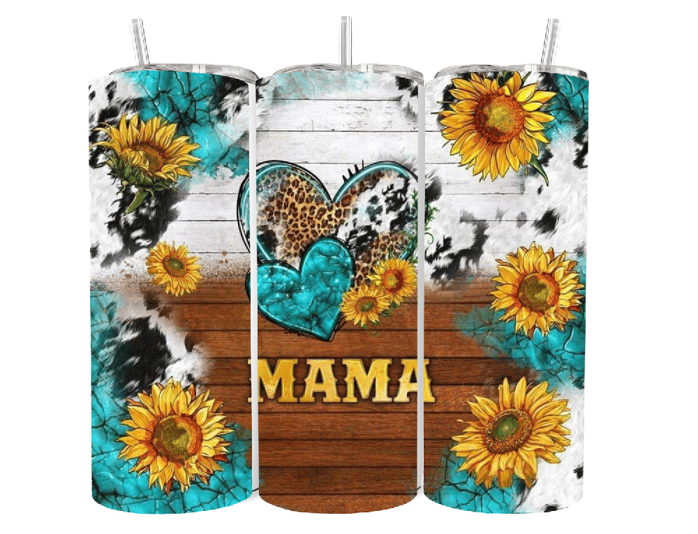 20 oz Mom Tumbler with Heart - Sunflower-Stainless Steel Insulated Cup-Perfect Gift for Mother's Day